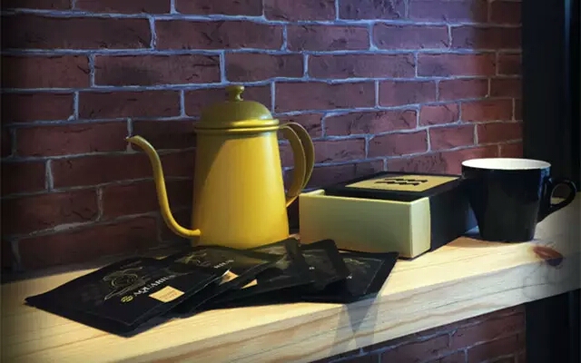 客房内独辟了一个咖啡角,客房内的咖啡也不是一般酒店的速溶咖啡包,而是成本贵10倍以上的精品挂耳包咖啡。客人可以在咖啡角制作咖啡,享用咖啡,在浓浓的咖啡氛围中,体验到像在咖啡馆一样的感觉。