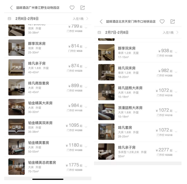 景区分店方面,华南片区成绩斐然,如喆啡酒店珠海横琴口岸海洋王国店,RevPar(平均客房收益)连续3天突破1450元,其中最高一天RevPar达到1585元,整个春节假期的RevPar超1300元。